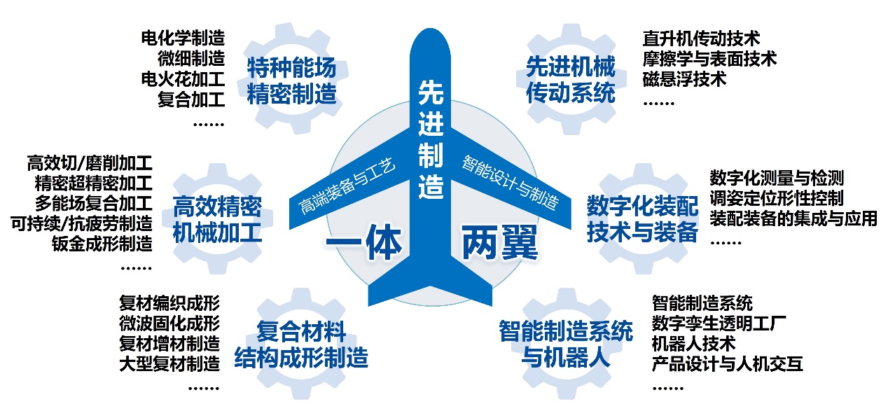 公司持续巩固和发展机械工程学科内涵,形成了以先进制造为主体,高端装备与工艺、智能设计与制造为两翼的“一体两翼”学科优势特色。主要学科方向有:特种能场精密制造、高效精密机械加工、先进机械传动系统、复合材料结构成形制造、数字化装配技术与装备、智能制造系统与机器人。
