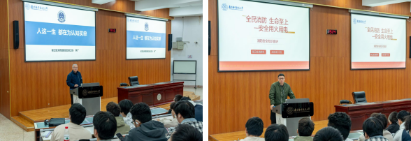 在安全宣讲环节,保卫处李广老师系统讲解了当前高发的诈骗类型与防范要点,结合典型案例剖析诈骗手法,强调“不轻信、不透露、不转账”原则。陈欢老师则通过真实案例科普火灾预防与应急逃生知识,从消防安全的角度强调了师生共建平安校园的重要性。
